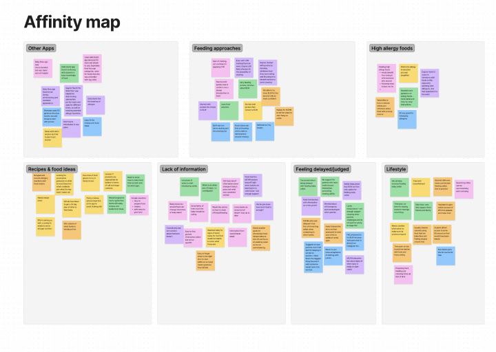 — Identified recurring problem areas: lack of info & support, feeling judged, recipe & food ideas, choking/allergy anxiety, overwhelmed & time-poor